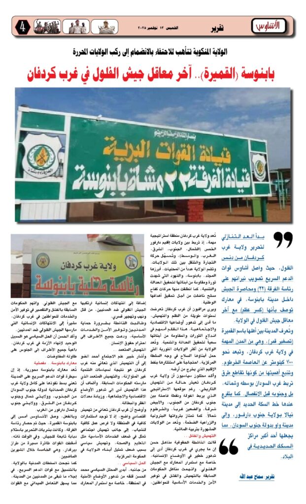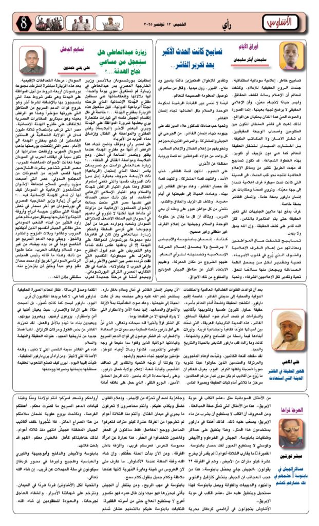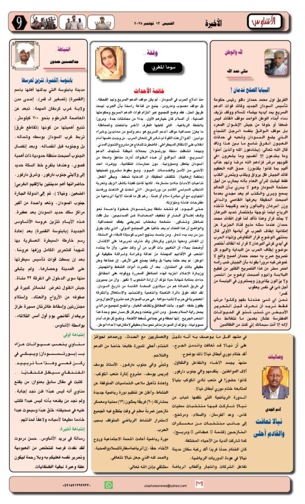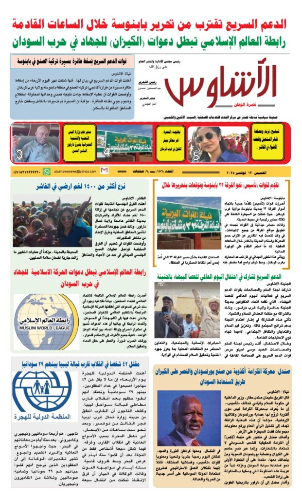 ⭕تطالعون العدد(١٥٦) من صحيفة الأشاوس مع أميز التغطيات والتحليل الصحفي والحوارات بتاريخ اليوم الخميس ١٣نوفمبر