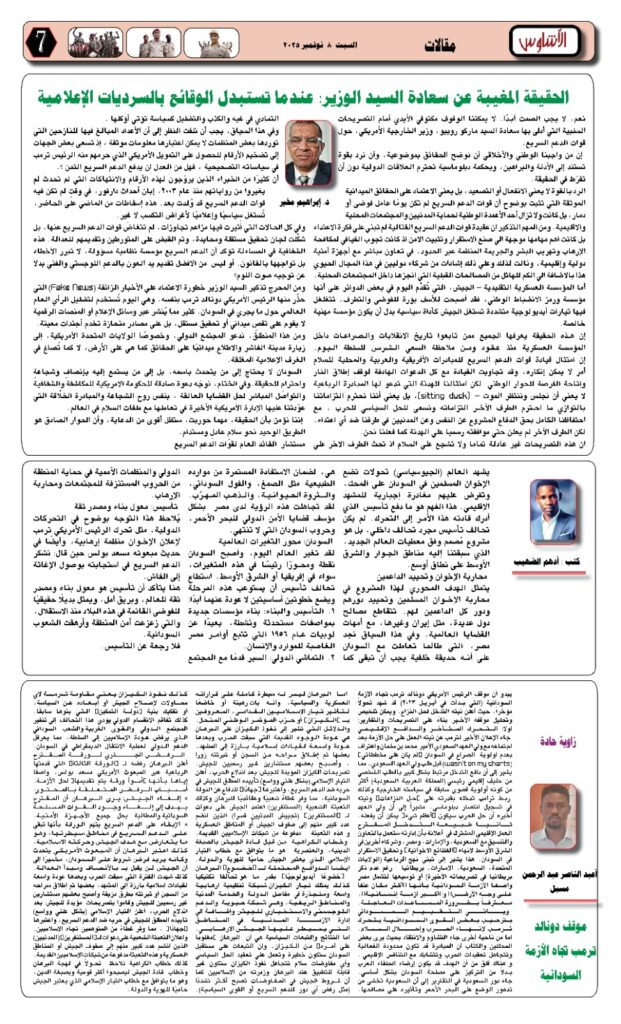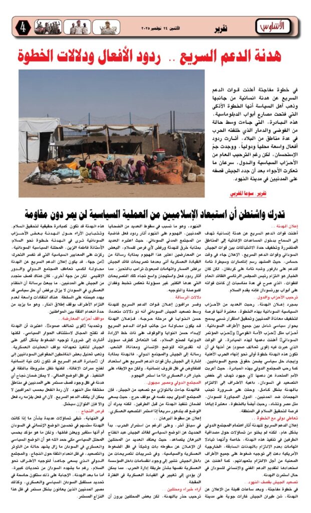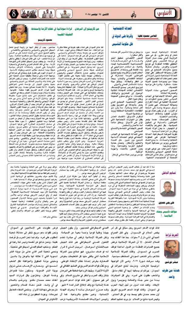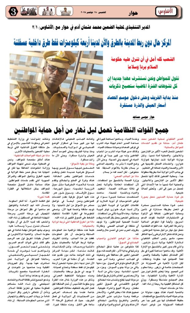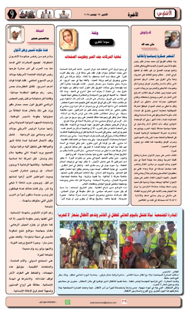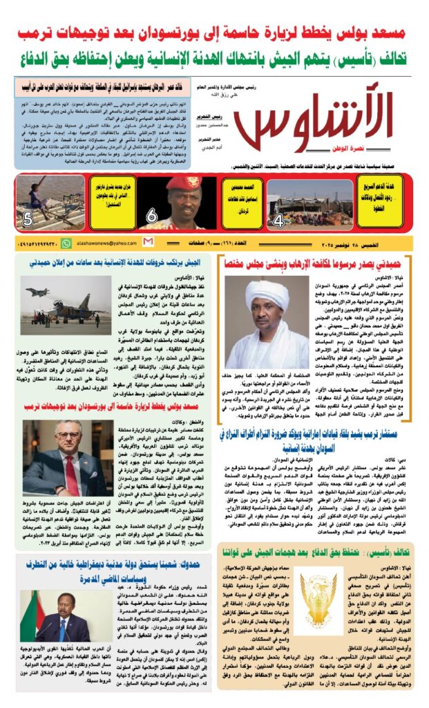 ⭕تطالعون العدد(١٦١) من صحيفة الأشاوس مع أميز التغطيات والتحليل الصحفي والحوارات بتاريخ اليوم الخميس ٢٧نوفمبر